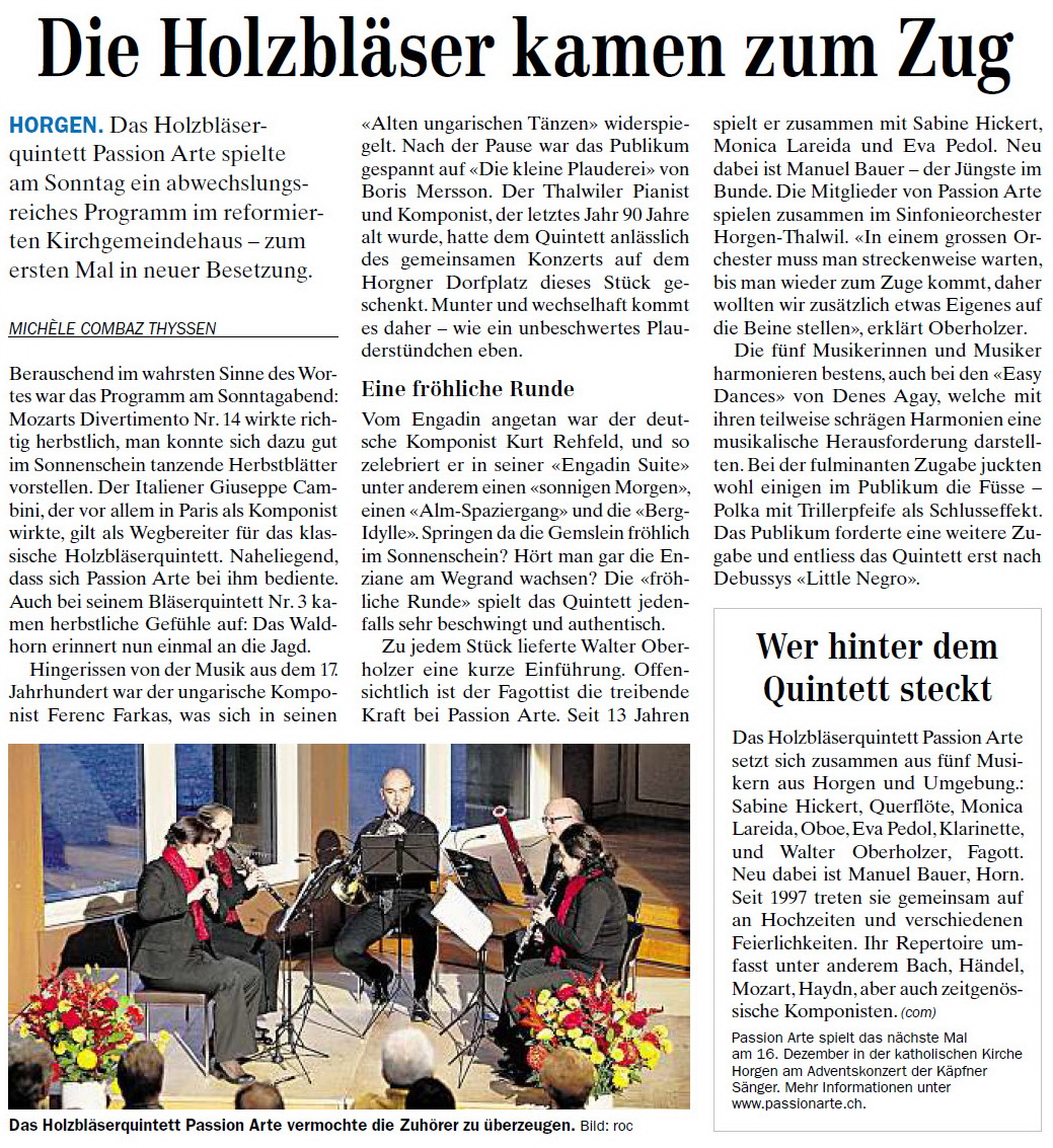 » Zeitungsbericht Zürichsee-Zeitung - Herbstkonzert, 4. November 2012